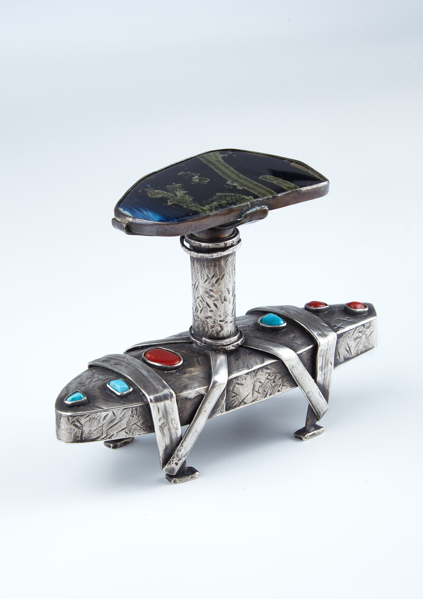 Владимир Шицалов не бросал вызов традициям ювелирного искусства — он наделил их новой пластической свободой. В сложных композициях поделочный камень становится живым живописным пятном. А металл (мельхиор, серебро, латунь) хранит память о прикосновении мастера. Особое место в его творчестве занимала работа с неожиданными материалами. Он видел художественный потенциал в самом обыденном. Автодетали или использованные гильзы в его руках обретали новую, ювелирную жизнь. При этом художник редко создавал украшение для конкретного заказчика. Он верил, что между вещью и человеком должно возникнуть личное, почти магическое притяжение. Женщина сама должна была найти среди его работ «свою» брошь или кольцо — то, что подчеркнёт её красоту. Многие из этих произведений впервые за долгое время вернулись в музейные витрины. На время выставки.