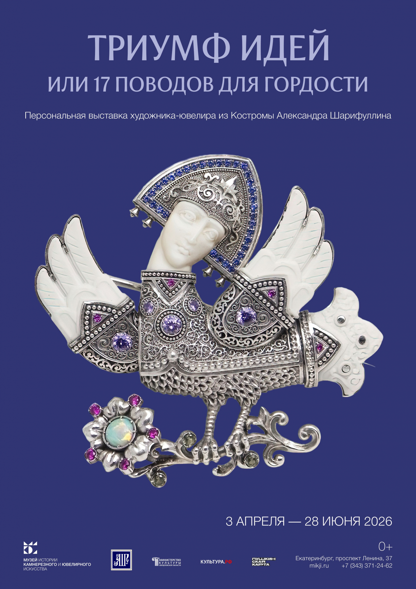 Выставка «Триумф идей или 17 поводов для гордости» это личный отчёт мастера, в котором он представляет работы, созданные за последние 11 лет. Все они были отмечены высоким жюри на всероссийских конкурсах авторского ювелирного искусства. Соседство вещей в витринах позволяет проследить профессиональный путь художника: от гарнитура «Радость Древнерусская» (2015) до браслета «Солнечная круговерть» (2025). Каждое украшение здесь — контрольная задача, личный вызов. Как признаётся сам Шарифуллин, их исполнение делает очевидным, дорос ли художник до воплощения собственных идей. В его случае — дорос до той творческой свободы, которая позволяет «сделать былью» любой замысел.
