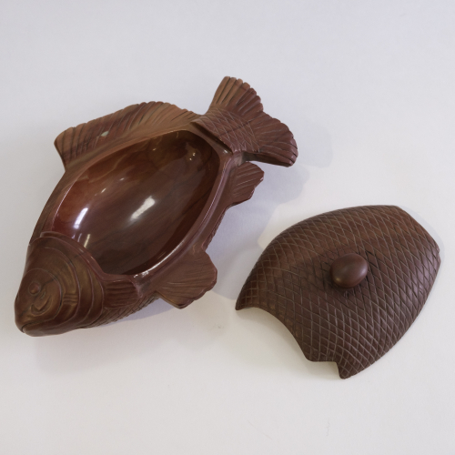 Татауров Николай Дмитриевич Коробочка с крышкой "Карась" 1956 г., г. Свердловск Яшма Размер: 9,5 х 23,0 x 13,0 см